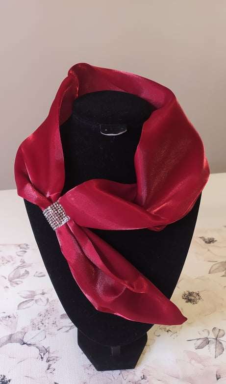 Vékony szatén selyem kendő, melynek a végén van egy díszes, strasszos hurok, melybe ha befűzzük, akkor a nyak körül egy szexi kendőt kapunk. Kapható: fekete, pezsgő, bordó, mintás színekben.